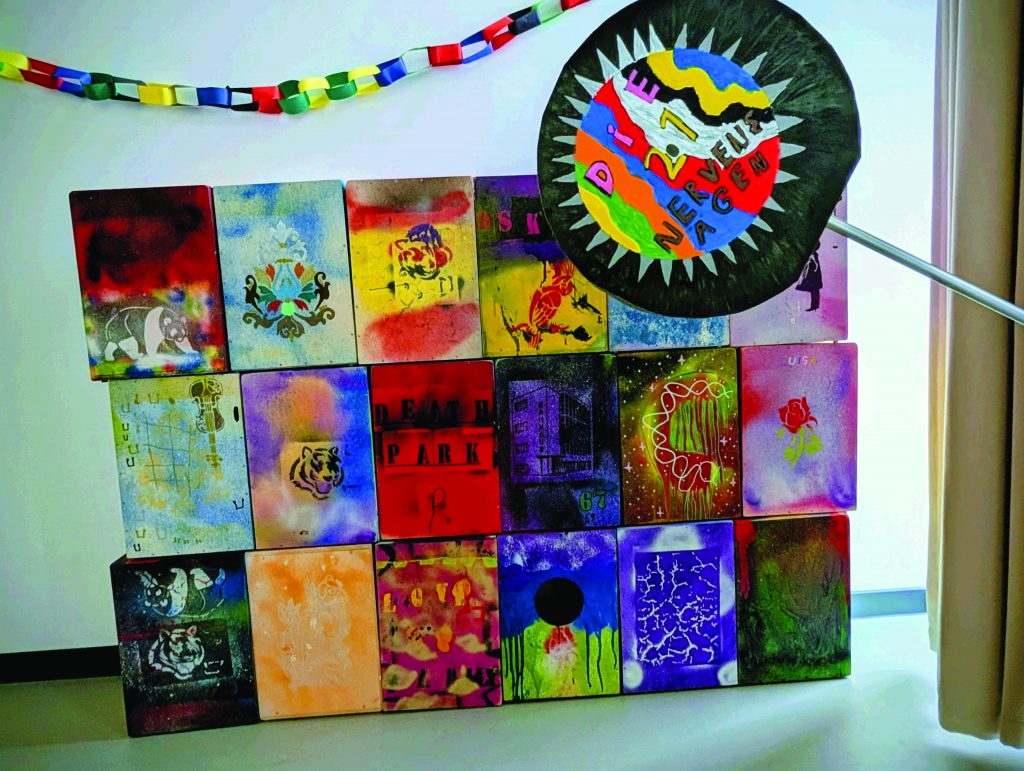 Unter Anleitung von zwei handwerklich begabten Musikern haben die Schülerinnen und Schüler mit hoher Konzentration und Präzision die Instrumente zusammengebaut. Aus der Holzwerkstatt wechselten die Kinder dann ins Freiluft-Atelier auf den Schulhof. Mit Acrylfarben und Schablonen gestalteten sie dort ihre Holz-Rohlinge zu einzigartigen und farbenfrohen Einzelstücken. Jetzt mussten sich die Kinder noch der Aufgabe stellen, ihre Schlaginstrumente auch rhythmisch zum Klingen zu bringen. Hier profitierten sie von der langjährigen Erfahrung der beiden Profimusiker, Dominic und Marco. Mit ihrer Unterstützung gelang es den Kindern, unter dem Bandnamen „Die 21 Nervensägen“ eigene Texte und Rhythmen in einer mitreißenden Percussion zu verbinden. Diese präsentierten sie zum Abschluss der musikalischen Weihnachtsfeier in der Turnhalle vor großem Publikum.